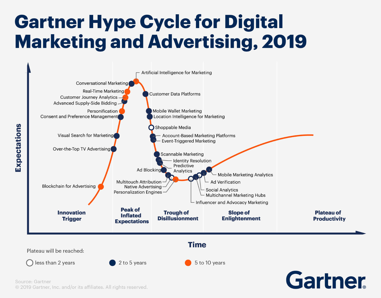 For me, that is probably the most thrilling pattern in advertising and marketing in the present day, bringing collectively speedy client adoption of sensible speakers and innovation in search question processing, conversational interfaces and messaging. Conversational advertising and marketing was highlighted as a key innovation within the latest Gartner hype cycle alongside Synthetic Intelligence, which regularly fuels it. You’ll be able to see that of the applied sciences on the Innovation Set off slope, many aren’t anticipated to change into mainstream for five to 10 years. Of these forecast to hit the mainstream inside the subsequent 2 to five years, the three most vital for entrepreneurs to think about are personification, real-time and conversational advertising and marketing.
